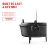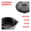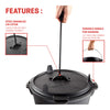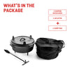 1 Deckel aus Gusseisen. Der mitgelieferte Gusseisen-Deckel mit zwei Funktionen hat integrierte Beine, wodurch er perfekt über dem Ofen oder über dem Lagerfeuer platziert werden kann, um als Pfanne oder Bratpfanne verwendet zu werden. Kochen Sie Ihre Bohnen im Topf, während Sie auf dem Deckel ein paar Eier zubereiten!