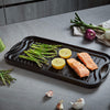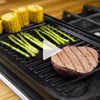 Die geriffelte Seite der Grillplatte eignet sich hervorragend für perfekt gegrillte Steaks, zum Knuspern von Fischhaut oder zum Grillen von Gemüse.