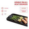 Egal, ob Sie einen Elektroherd haben oder Kochen mit Gas über einer Flamme oder Lagerfeuer bevorzugen, mit gusseisernen Grillplatten funktioniert es perfekt. Machen Sie sich bei Gasherden oder über Campingkocher keine Sorgen über die offenen Flammen an Ihrem Grill. Das Material ist hitzebeständig. Daher ist es egal wie viel Hitze Sie verwenden, die Grill-Gussplatte hält allem Stand.