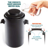 The water-sealed crock is durable and easy to clean. It's made with all-natural, food-safe material. Unlike traditional fermenting crocks, this stoneware pickling crock has a lid and water seal. It keeps vegetables and sauerkraut free from air and possible contamination. Material: Glazed ceramic; Dimensions: 10 x 10 x 12 inches (LxWxH); Capacity: 1 Gallon; Colour: Black. This fermenting crock pot is the perfect size for small-batch fermenting. The well-designed handles make it easy to use and move around. It is suitable for all kinds of fermenting, sauerkraut, kimchi, kombucha, fermented vegetables, and much more.
