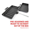 Natürlich können Sie Ihr Lieblingssandwich mit sich grillen, aber Sie können auch Fleisch kochen oder Ihre Lieblingsrezepte neu erstellen. Pudgy-Kucheneisen bestehen aus vorverzierter Gusseisen, um Rostern zu verhindern und Aromen zu verbessern. Es ist mit einem doppelten Kuchen-Eisenkopf, Grillgitter und zwei unterschiedlichen Größengriffen ausgestattet.