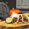 1 Tortilla-Presse aus Gusseisen (25-cm- oder 20-cm-Tortillapresse). Dank der verschiedenen Größen wählen Sie einfach die passende Presse für alle Ihre Anforderungen an Tortillas. Für Burritos benötigt man große Mehltortillas, Tacos gelingen besser mit dünneren Maistortillas (20 cm).