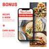1 E-Book mit Rezepten. In diesem Rezeptbuch finden Sie unzählige inspirierende Rezepte, die Sie mit dieser Tortillapresse zubereiten können.